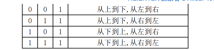 - GRAM的地址递增方式按照,MY、MX、MV设置的扫描方向递增。