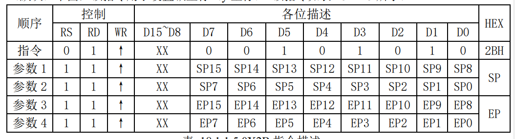 - 作用:设置GRAM的列地址范围,定义显示窗口的左右边界