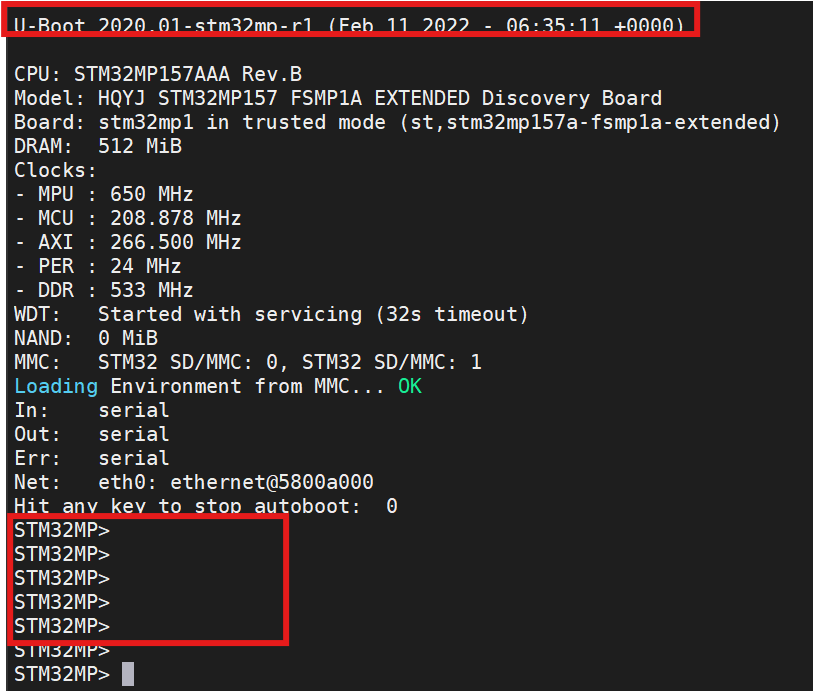 4、重新启动开发板,在开始输出东西时,一直按下enter键。直到到进入U-boot模式。