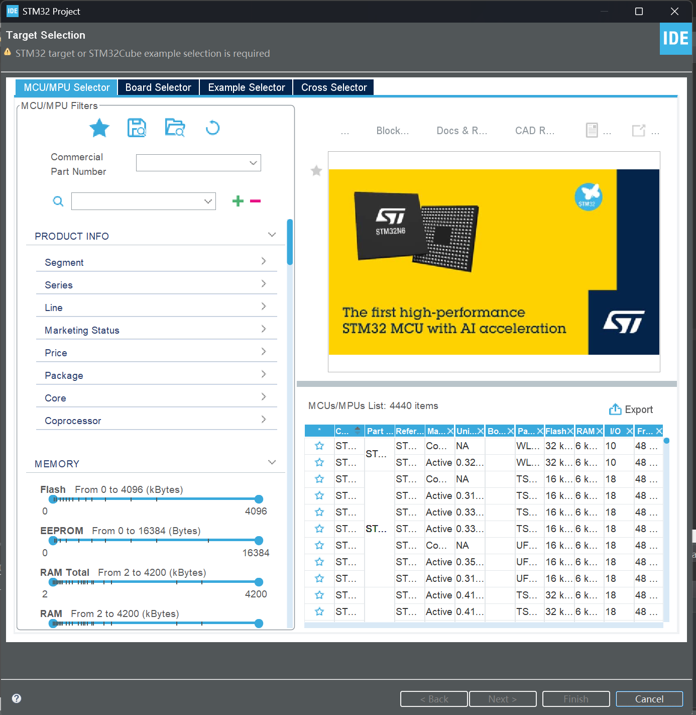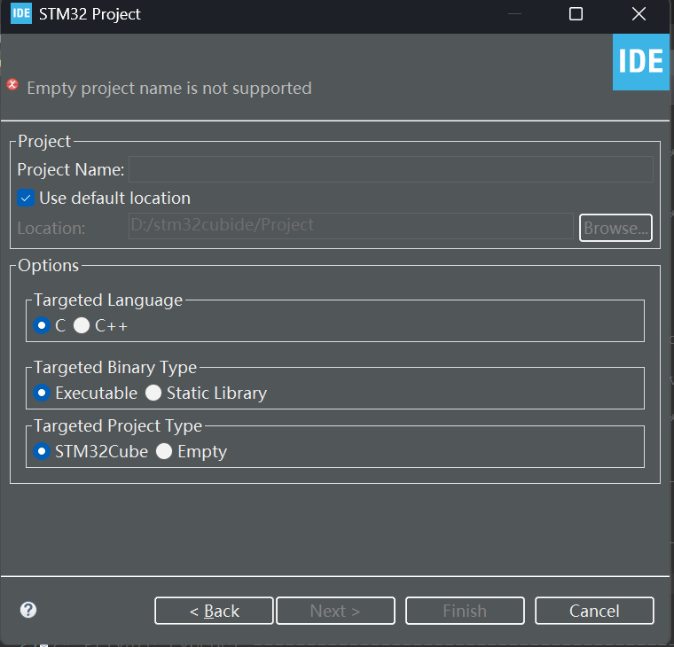 选中你的芯片型号只有,点击右下角的Next,然后进入到创建项目的界面,如下图。
