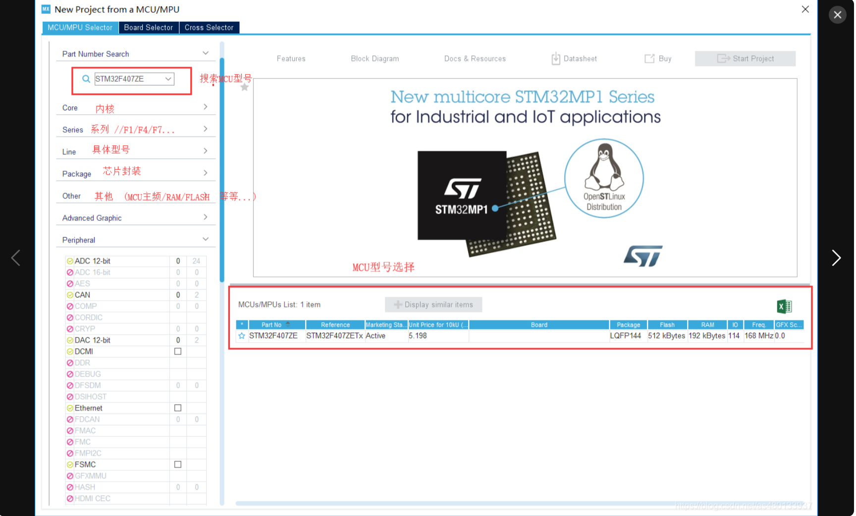 在这个中,有一个Part Number Search的一行,下面有个搜索的图标。在方框中输入型号。我这次使用的是stm32F407ZGT6.下面图片中不一样,是我截取网上的图片。