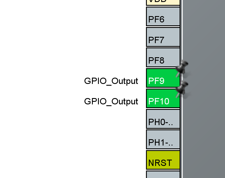 在 GPIO 配置窗口中,找到 PF9、PF10,可以设置以下参数: