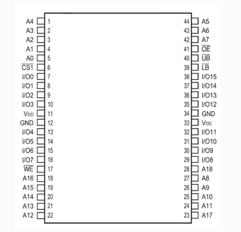 例如,当要访问宽度为16位的数据时,使用行地址线指出地址,然后把UB#和LB#线都设置为低电平, 那么I/O0-I/O15线都有效,它们一起输出该地址的16位数据(或者接收16位数据到该地址);当要访问宽度为8位的数据时,使用行地址线指出地址, 然后把UB#或LB#其中一个设置为低电平,I/O会对应输出该地址的高8位和低8位数据,因此它们被称为数据掩码信号。