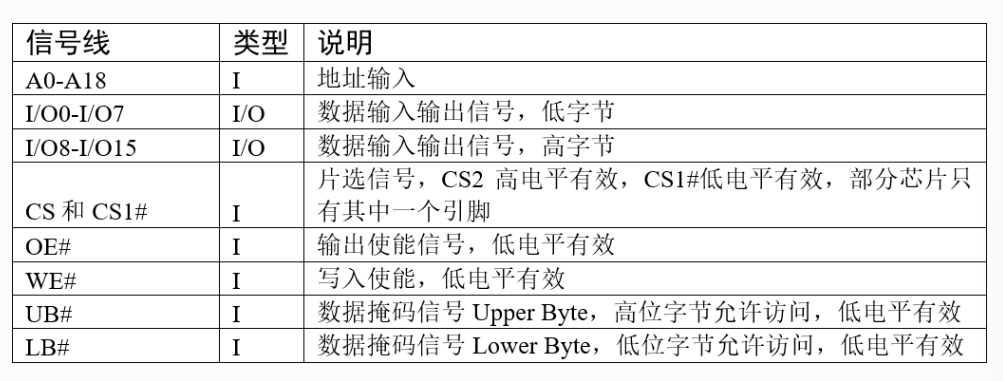 SRAM的控制比较简单,只要使能控制信号,从地址从线输入要访问的地址,就可以读写数据。