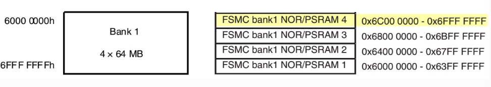 FSMC 的内存映射特性简化了对外部存储器的访问,因为可以像访问内部存储器位置一样,使用微控制器的标准加载和存储指令来处理它